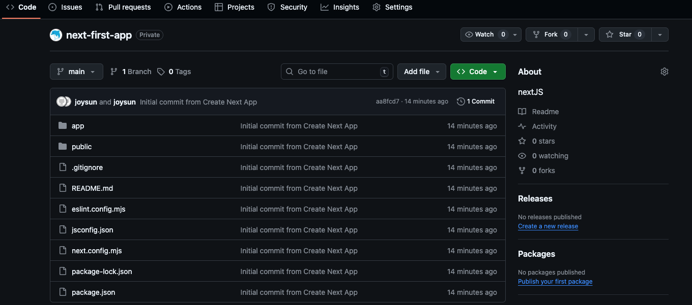 완료하고 나면 github에 코드가 올라간걸 확인할 수 있습니다.