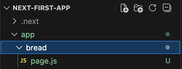 1. NextJS프로젝트-app 폴더안에 새로운 폴더를 생성합니다. 이름은 변경 가능, 전 bread라고 지었습니다.