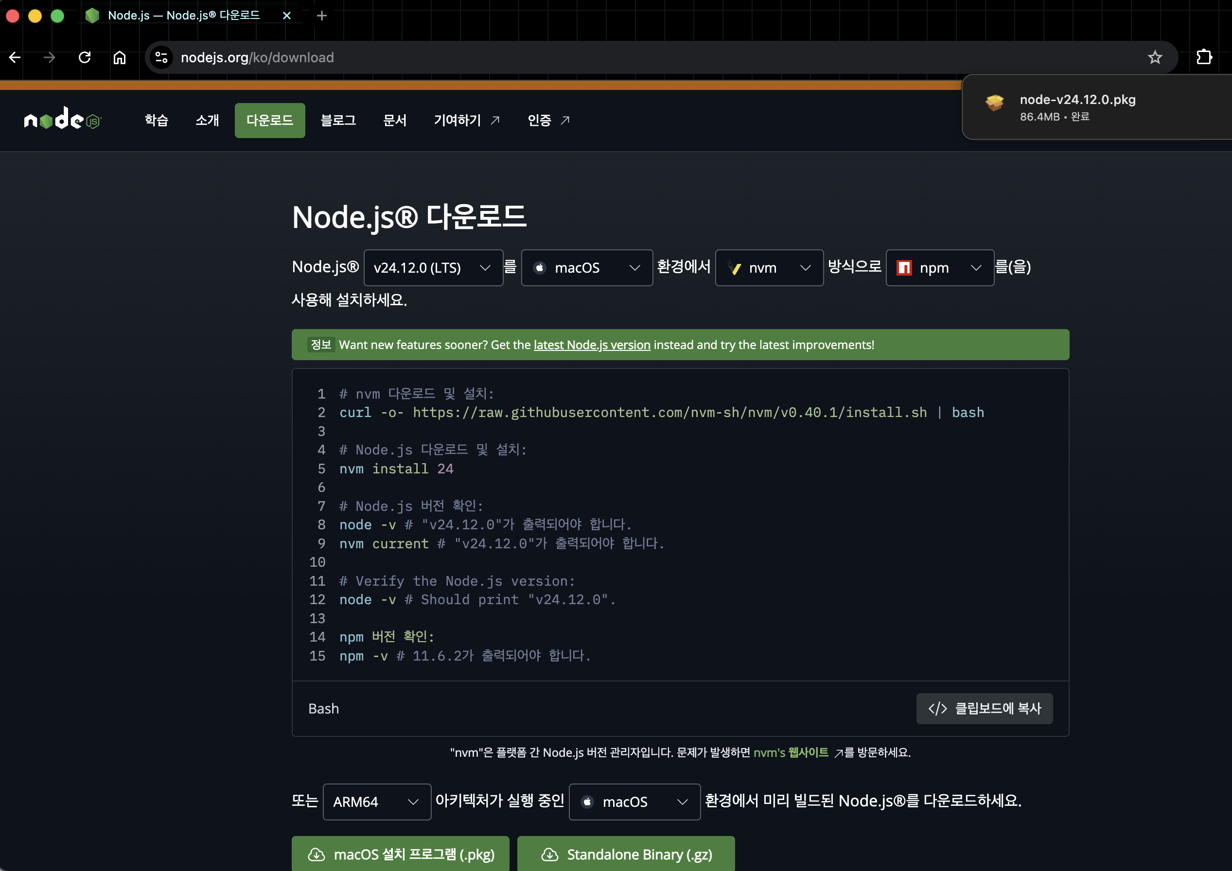 https://nodejs.org/ko/download