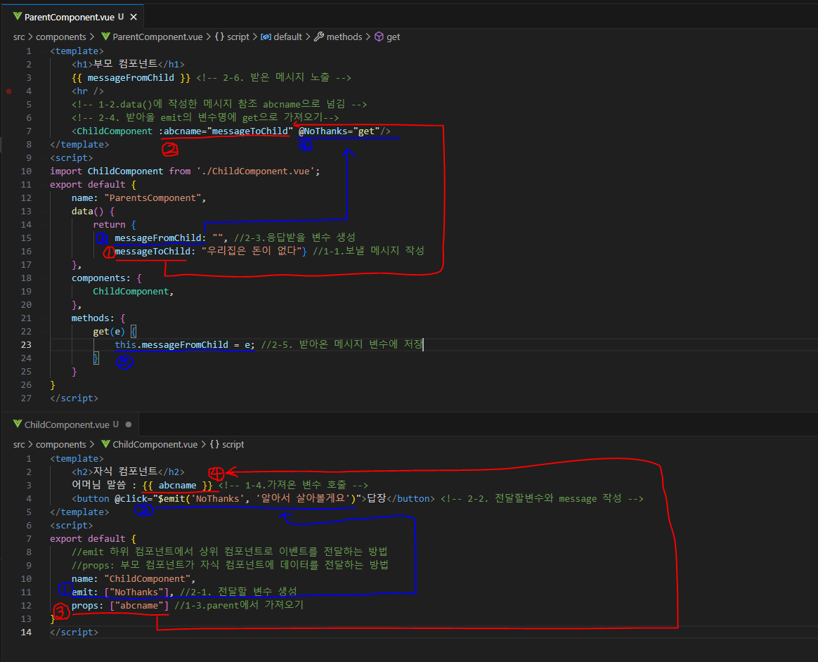//emit 하위 컴포넌트에서 상위 컴포넌트로 이벤트를 전달하는 방법